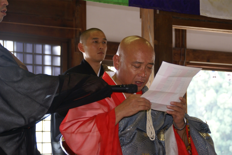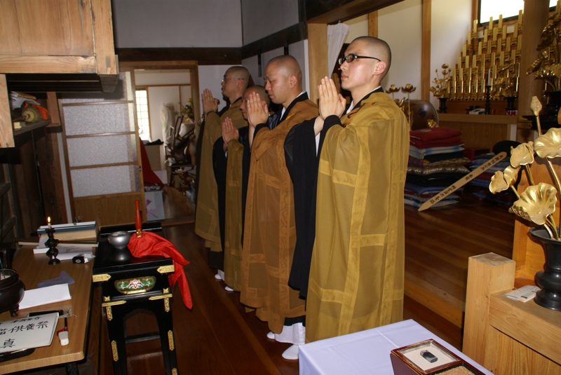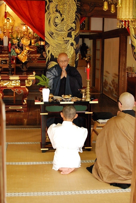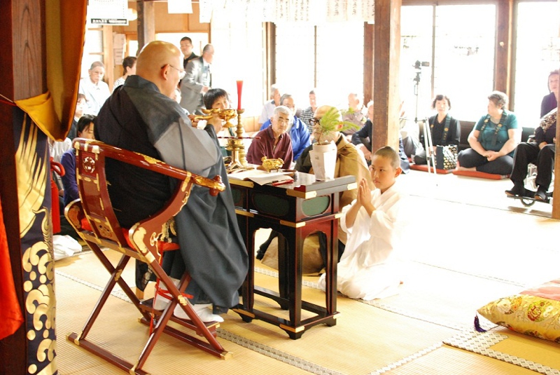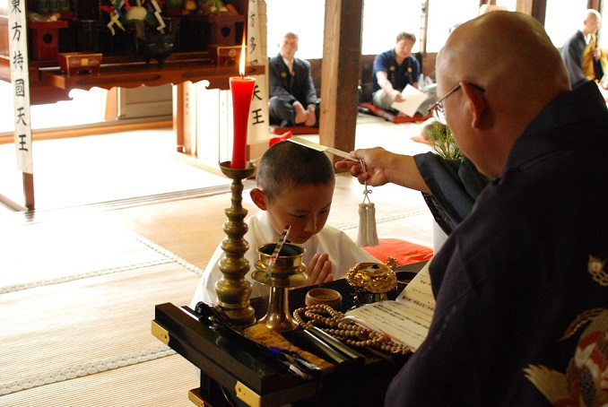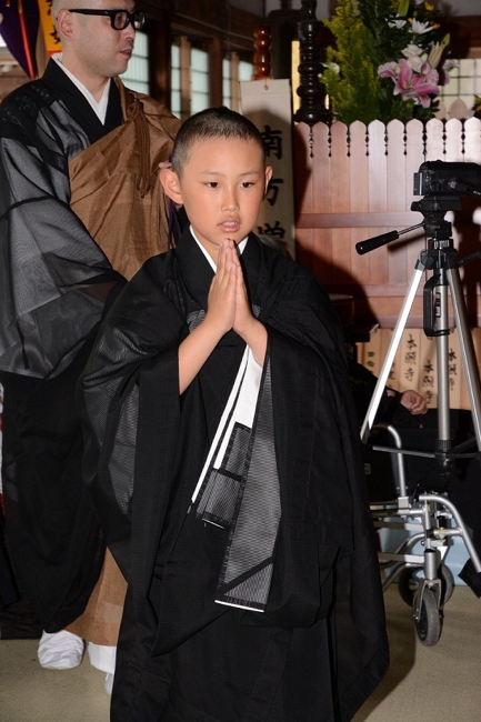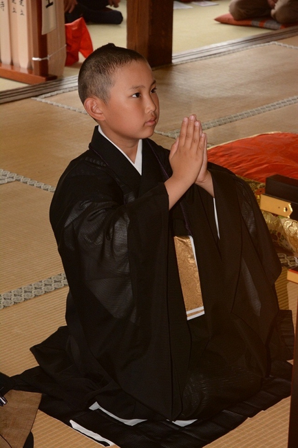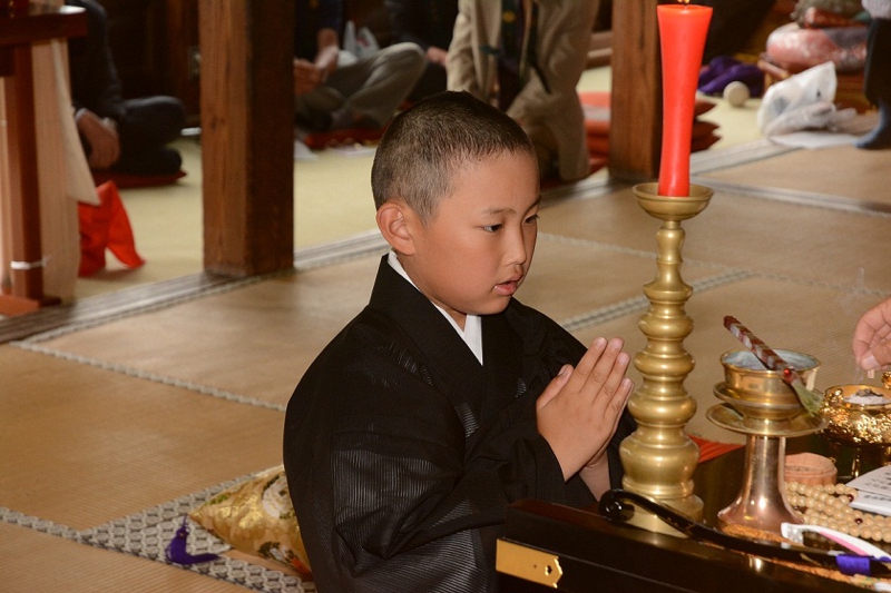 - 得度式を経て、住職より「賢学」という安名を授かり、「賢学竜大」(けんがくりゅうだい)が正式な僧名ということになります。得度式を経たとしましても、まだ小学生ですので、檀信徒の皆様、地域の皆様には、これからも弟子の成長をあたたかく見守って頂ければと思います。