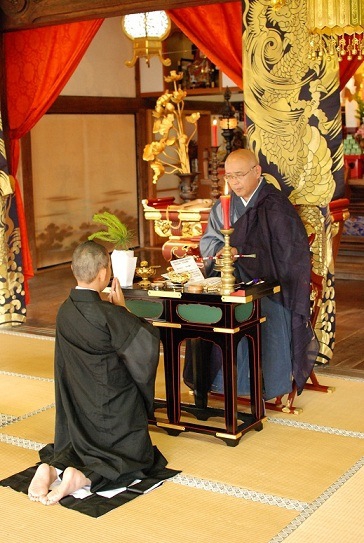 - 「得度」とは、正式な作法を通して、僧侶に相応しい姿となることによって、仏のみ教えを信じ、仏の徳を身に具えることを意味します。「得度式」とは、師匠(受業師・じゅごうし)によって、髪を剃り落としていただき、衣、袈裟などの、仏具をいただき、お釈迦さま以来、歴代の祖師たちがひとえに伝えてきた「戒法」と「血脈」とを受けて、正式に僧侶の仲間入りをする儀式のことです。