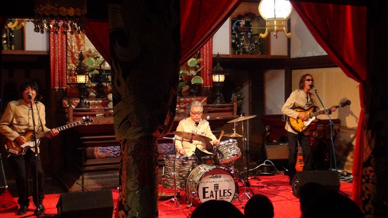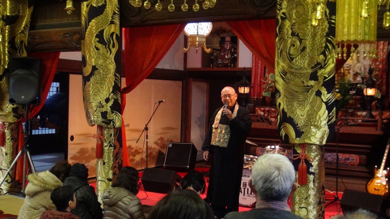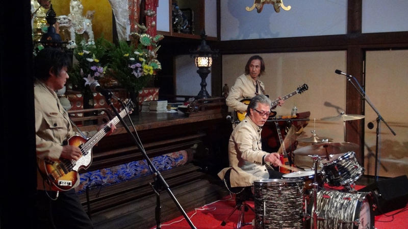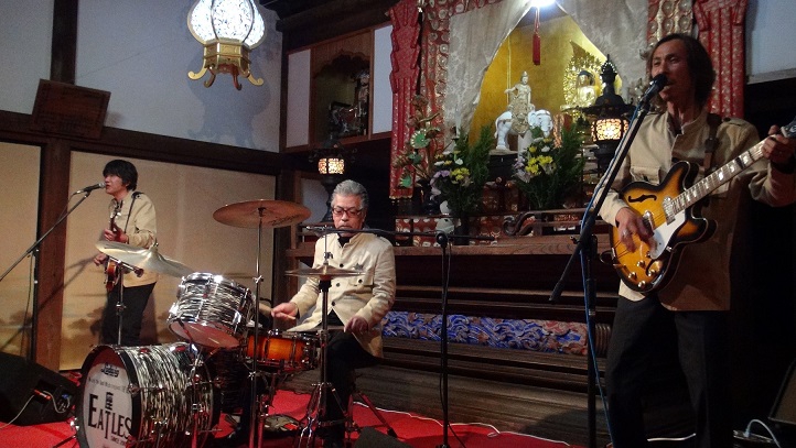 11月23日(土)勤労感謝の日 3回目となる恒例の本願寺コンサート(寺コン)が開催されました。今年は座・EATLESの皆さんによるビートルズロックと赤見っ子の田中正三偉人伝八木節の演奏を行いました。また、太田市にあります、「金星食品」さんのご厚意で、東北の食材を使った「復興支援餃子」がふるまわれ、大好評を頂きました。